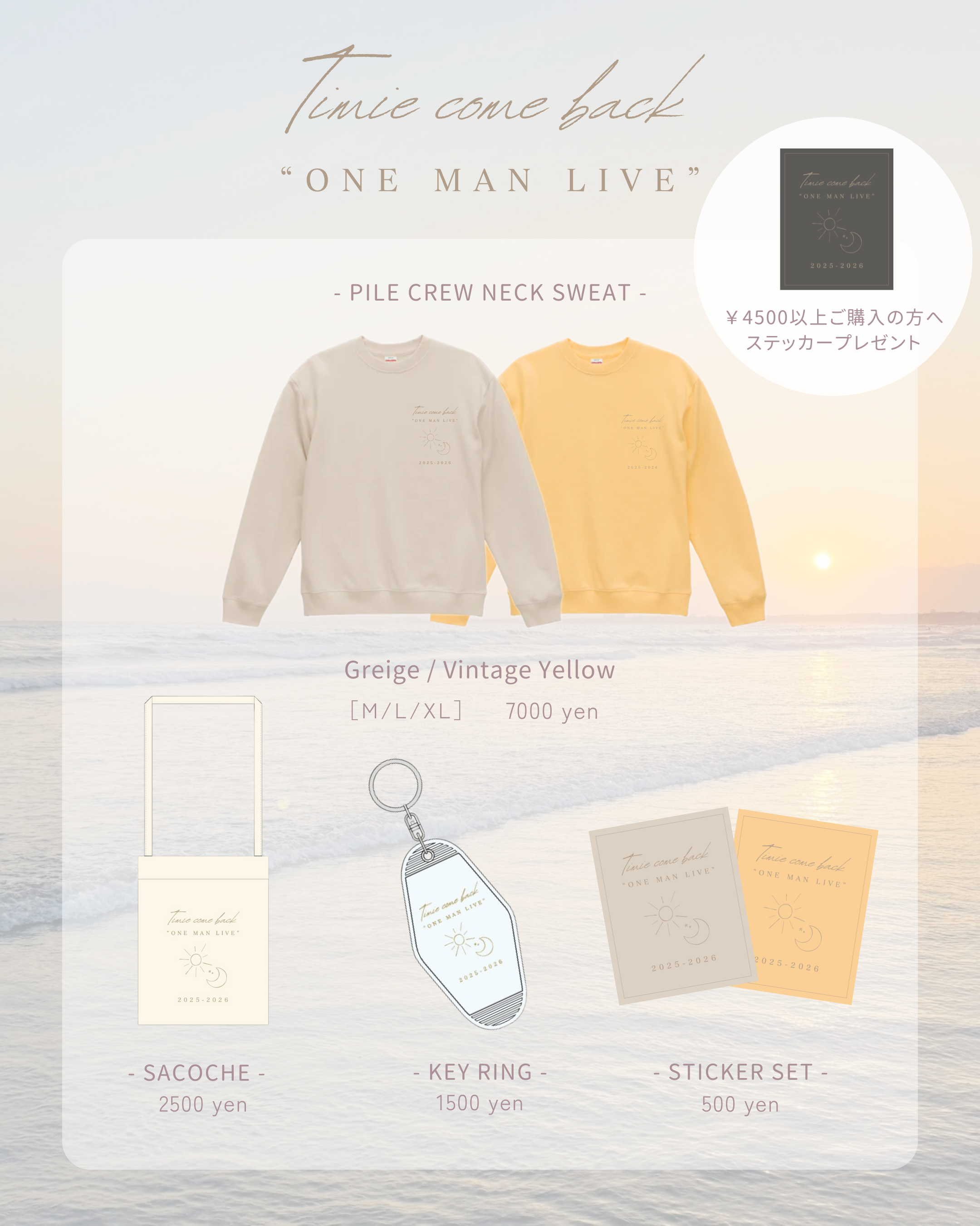 ステッカー(2色セット) 『Come Back "ONE MAN LIVE"』オリジナルデザインがプリントされています。 表面:マット加工 サイズ:縦5cm × 横4cm ※4500円以上で限定色ステッカープレゼント ※10000円以上のお買い上げで送料無料